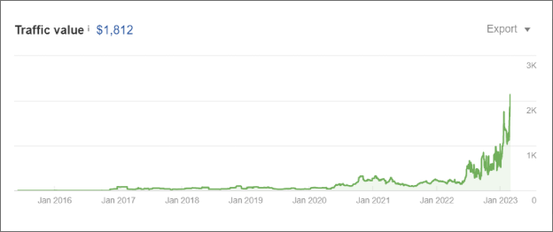 As a result, ACE Audiology’s organic traffic has increased by 285.79% or 1,311 visitors per month on their website. Additionally, the increase in traffic value has been impressive, going from $57 to $1,812 on the current date(that is 3078.95% since we started our SEO campaign!), reflecting a significant growth in their business.