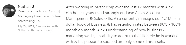You may visit our profiles on Google  Facebook or Linkedin for Reviews with Testimonials from Real Business Owners & CEOs. Feel free to add us as a contact. Statistics show that over 66% of SEO & Internet Marketers Testimonials are simply just made up or fabricated. Here is just what a few are saying about my work!